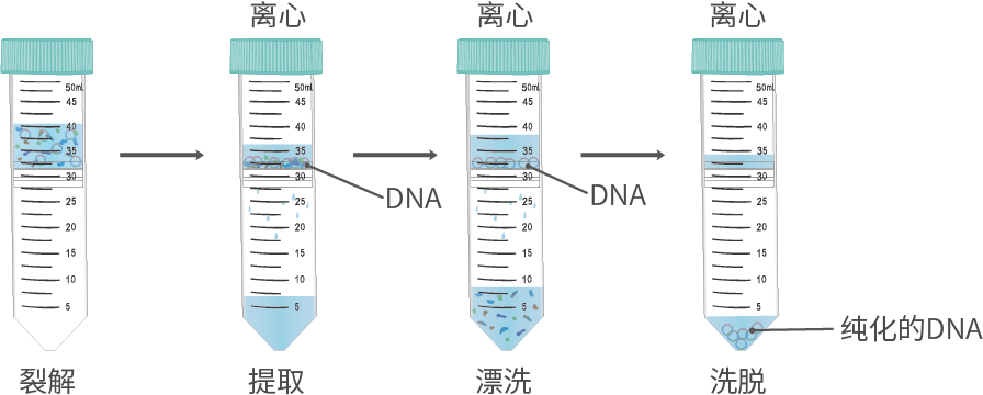 原理:通過解離后表面大量帶負電的硅羥基(Si-OH)與帶正電鹽離子、帶負電DNA形成電橋,從而吸附住基因組DNA,實現(xiàn)純化分離。