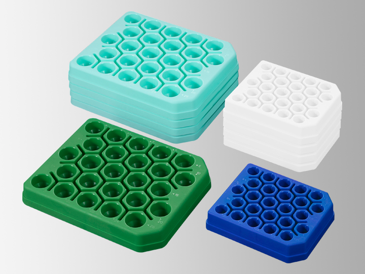 離心管架可將各類(lèi)離心管垂直穩(wěn)固地固定,有效防止樣品傾倒和灑落,保障實(shí)驗(yàn)過(guò)程的安全與準(zhǔn)確性。潔特生物離心管架采用優(yōu)質(zhì)聚丙烯(PP)材料制成,不易變形,堅(jiān)固耐用,反復(fù)凍融及高溫、高壓滅菌后仍能保持良好性能,可重復(fù)使用。系列產(chǎn)品擁有多種規(guī)格,可適配潔特生物離心管、微量離心管、凍存管、PCR管、生物反應(yīng)管及大容量離心瓶,滿(mǎn)足不同實(shí)驗(yàn)場(chǎng)景下的樣品處理需求。