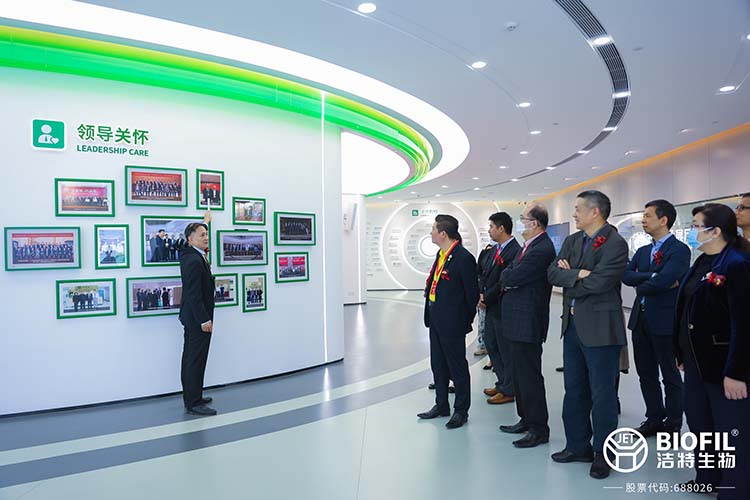 隨后,在潔特生物董事長袁建華,董事、總經(jīng)理YuanYe James的帶領(lǐng)下,嘉賓們分批參觀潔特產(chǎn)業(yè)園,對潔特生物企業(yè)展廳、智能制造生產(chǎn)車間、辦公區(qū)、潔特檢測中心、潔特孵化器樣板間、會議中心等進(jìn)行了詳細(xì)了解。