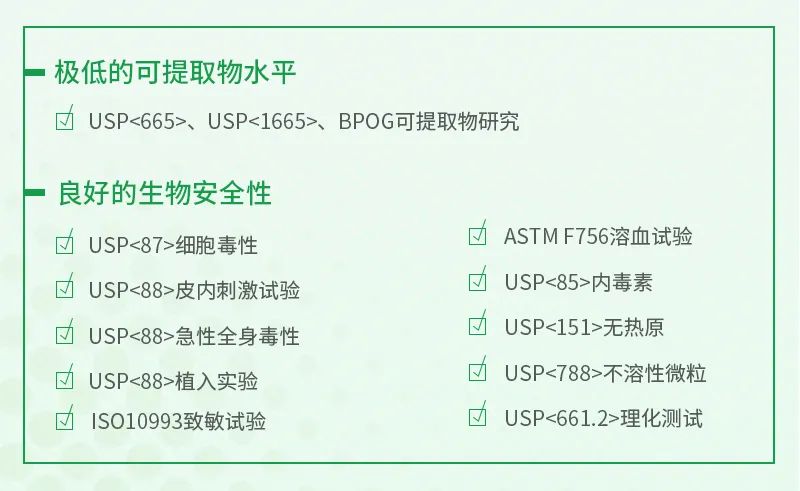 ◆ 成品經(jīng)權(quán)威第三方檢測,具有極低的可提取物水平和良好的生物安全性