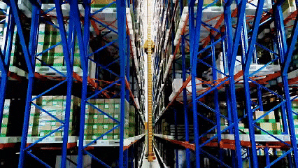在立庫巨大的鋼貨架之間,有8條達(dá)60米的狹長(zhǎng)巷道,每條巷道上,都有一位“擎天柱”——堆垛機(jī),它們代替了傳統(tǒng)的人工和高位叉車,在貨架間快速升降穿梭,精準(zhǔn)地從不同儲(chǔ)位取出或放入貨物。地面上,穿梭車(RGV)和自動(dòng)導(dǎo)引車(AGV)來回穿梭,承擔(dān)著物料與成品的運(yùn)輸任務(wù),保障貨物的高效流轉(zhuǎn)。而貨物分揀環(huán)節(jié),則由專業(yè)的機(jī)械手精準(zhǔn)完成。