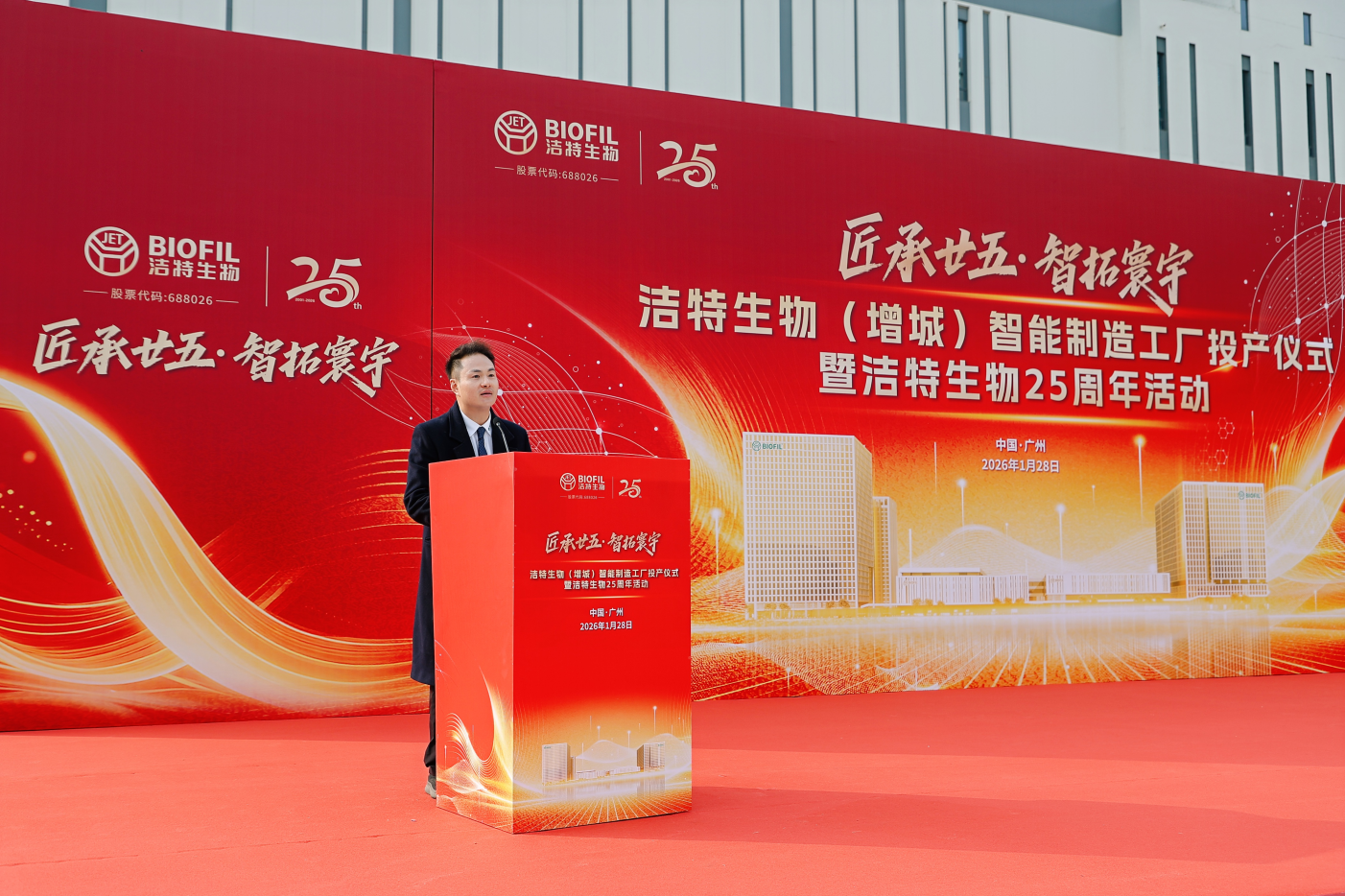 2026年1月28日,以“匠承廿五·智拓寰宇"為主題的潔特生物(增城)智能制造工廠投產(chǎn)儀式暨潔特生物25周年活動,在廣州增城經(jīng)濟(jì)技術(shù)開發(fā)區(qū)盛大舉行。