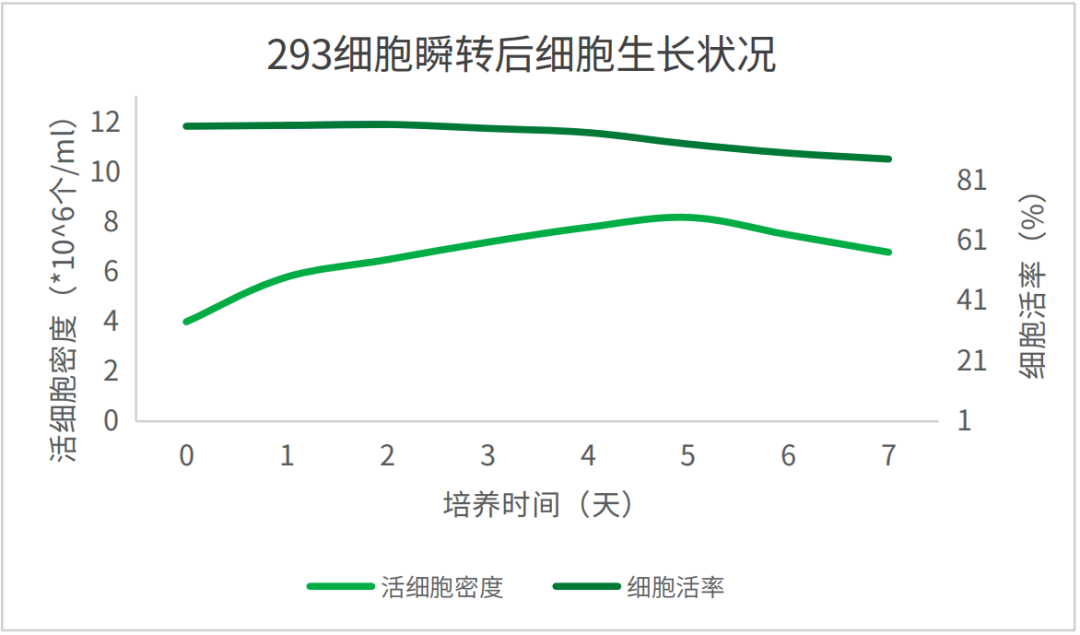 支持多種懸浮293細胞的快速擴增和高密度生長,細胞密度可達1×107個/mL,細胞密度達最高時其活率還保持90%以上