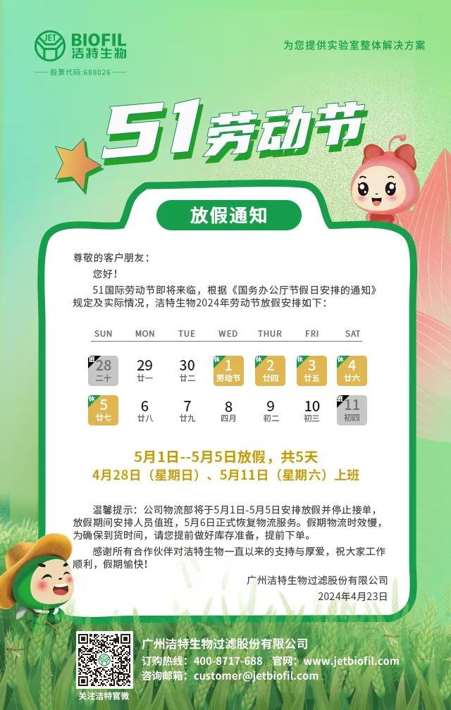 潔特生物51勞動(dòng)節(jié)放假通知!
