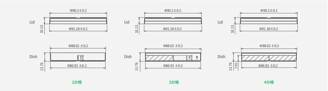 * 多種隔間可選,一體注塑成型,結(jié)構(gòu)牢固、獨立性好,避免交叉污染